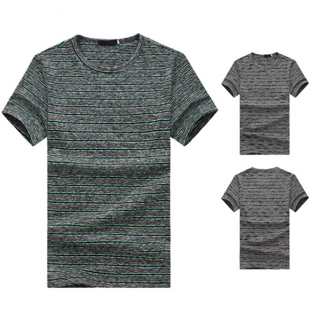 New Men's Striped Stretch Frame Plus Size Short-Sleeved T-Shirt