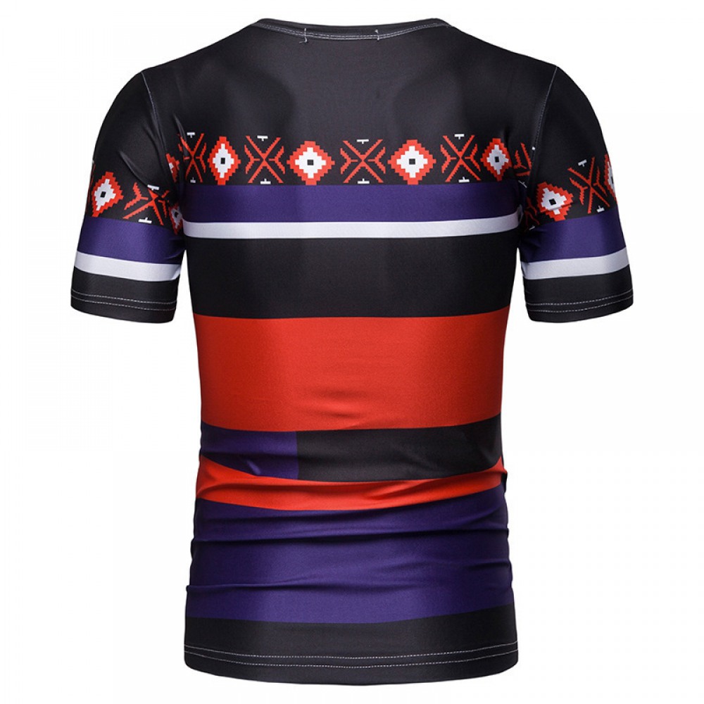 New Summer Men's Short-Sleeved T-Shirt Mens Contrast Striped Slim-Fit Casual T-Shirt