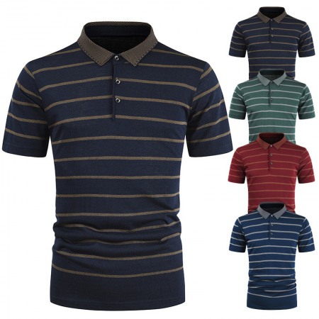 Men's Casual Fashion Striped T-Shirt Hot Sale Men's Short Sleeve