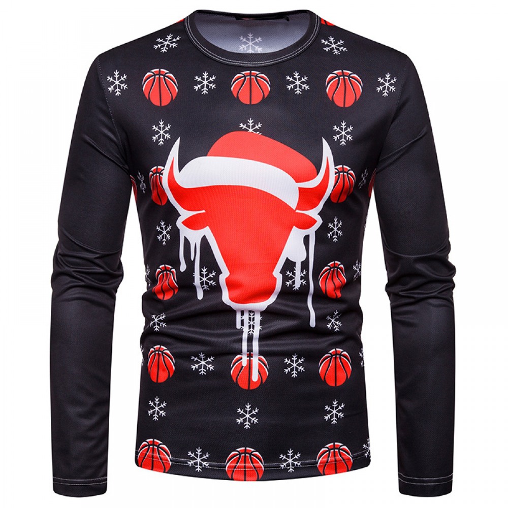 New 3D Personality Printing Fashion Men's Christmas Pattern Long-Sleeved T-Shirt