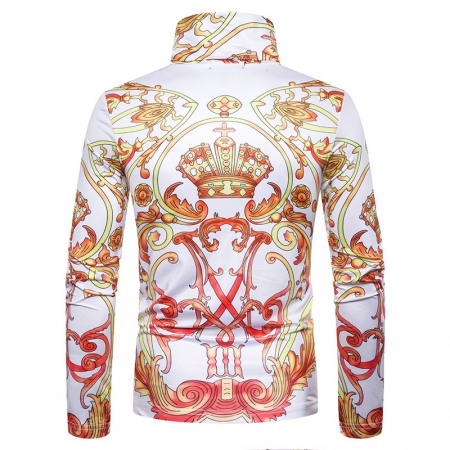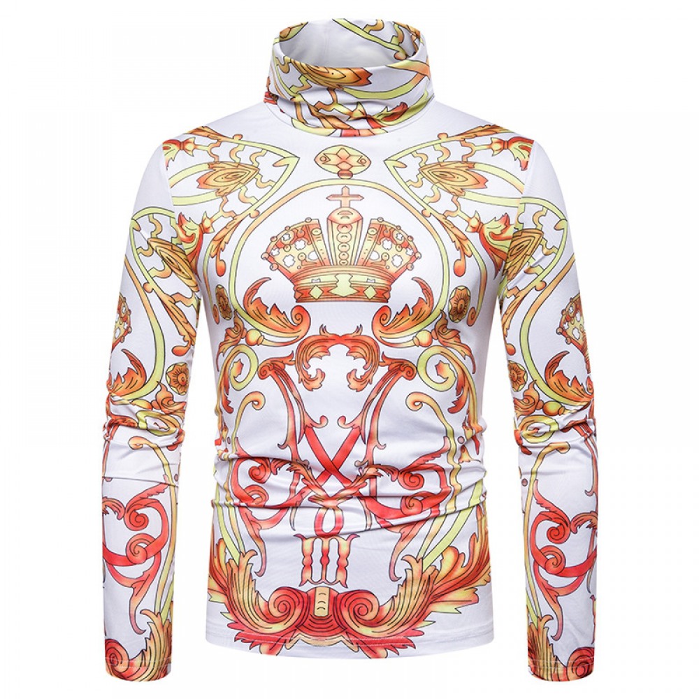 New Men's Plus Size 3D Classical Crown Printing High Neck Long Sleeve T-Shirt Bottoming Shirt